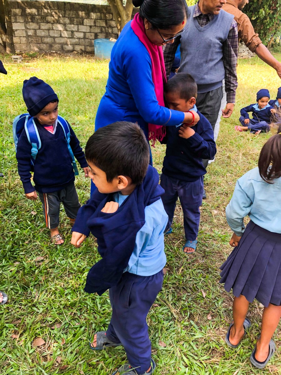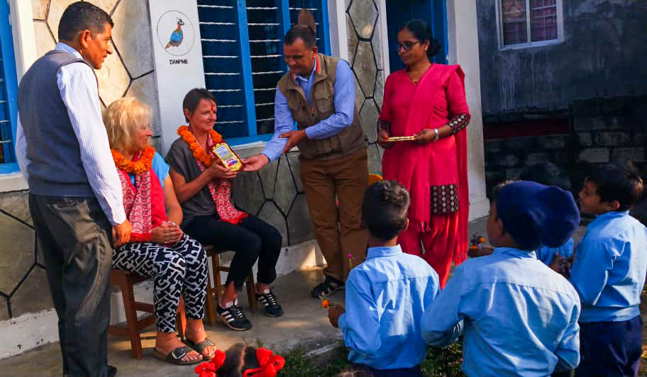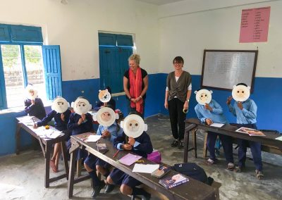 At the beginning of November my friend Suzan and I went to the Pame school. We received a really warm welcome from the Headmaster and his wife whose house we would be staying in for the duration of our teaching. We walked 5 minutes up the hill with the Headmaster to Pame school where we were warmly welcomed by the teaching staff. We had a great time teaching all of the classes (except the nursery class) and found the pupils as is usual for Nepal to be warm, fun loving, bright, and very keen to learn. On one of the days we all sat out on the grass in the sun and distributed hats, jumpers, socks and shoes, and notebooks and pencils we had been able to buy with the money collected through our fundraising. The children were all very excited, the staff were incredibly appreciative as were the parents when they saw their children coming home wearing the new clothes and shoes. On another day we distributed some warm jackets and other donated clothes to the children with the help of the teachers. The shoes, football boots and jackets were particularly prized. While we were teaching at Pame we were struck by how excited the children were to the use coloured pens, crayons, and coloured paper we had brought with us. We made animal masks with paper plates and coloured books for learning English. The Headmaster and teachers at Pame are very caring and dedicated doing a great job in an environment with very few resources. In addition to the notebooks and pencils your money paid for, we were able to contribute coloured pencils, a model human body, a couple of footballs, and a frisbee, the kinds of things that make school just a bit more interesting and fun. We were sad to leave and were treated to a lovely speech and presentation from the Headmaster, and we also had a visit from the Chair of the school management committee who had come out to the school specifically to thank us for our work and support. We promised to return next year. We then visited the school in Jogimori where Elina and I have taught for the past 2 years and where last year we provided uniforms and school supplies from the money through last years Islip concert and our Go fund Me campaign. This year we went to Jogimori to help out with some more teaching and to catch up with the children and our friends in the village. We were able to take a pair of donated shoes to one of the boys who we had heard from another volunteer was in need and we were able to take a new football and a skipping rope to the school. It was lovely to see everyone. Now we are home and its time start to plan next years trip! Diane